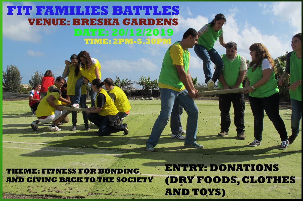 These activities are meant to strengthen family bonds and create a sense of belonging to each family member.This event is also an opportunity to give back to the society by donating dry foods extra clothes that are still wearable and toys for kids from less privileged families.Donations collected will be given to these families in the festive christmas season which is approaching like wild fire.Purpose to attend,do not leave anyone behind.